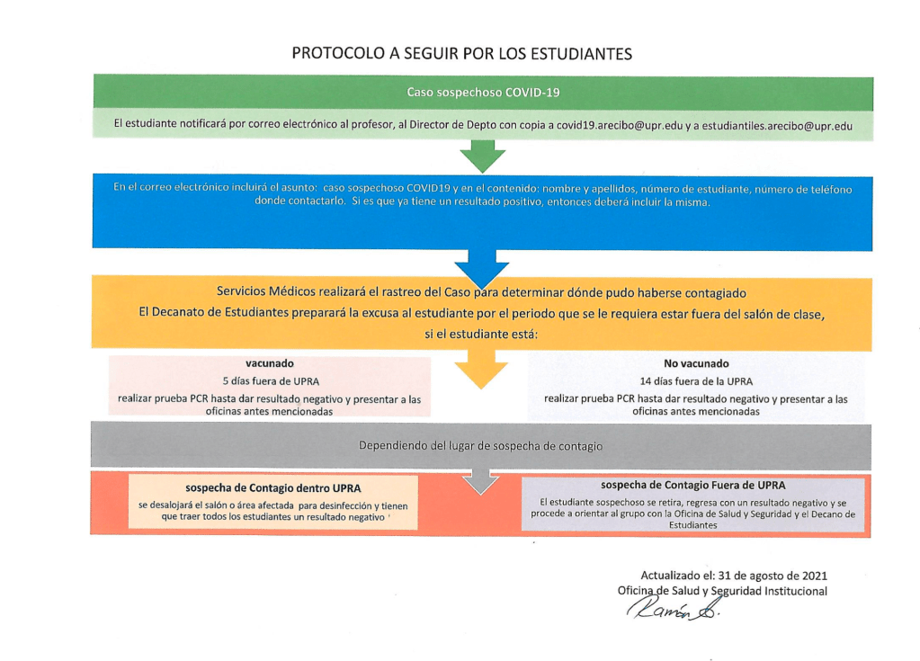Por su parte, Alex M. López Romero, estudiante de Comunicación Tele-Radial en la UPRA, categorizó como ilógico y absurdo el protocolo que estableció el Oficial en Salud, Seguridad Ocupacional y Ambiental, Ramón Torres Santiago, en una reunión el pasado 2 de septiembre con las directivas de las asociaciones estudiantiles.