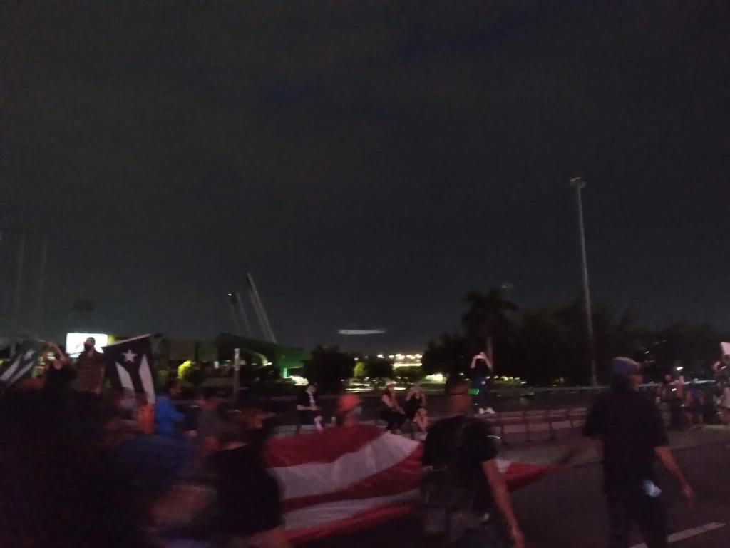 La oscuridad llegó y a son de «sea la madre se fue la luz» las personas caminaban a oscuras por la calle. De alguna casualidad todos los postes de la calle estaban apagados. Todo el camino que se había pautado para la protesta estaba a oscuras. En el inicio aclaré que sería lo más sincero posible en decir lo que vi, esto era algo inexplicable en un principio creía que quizá se había ido la electricidad nuevamente, pero cerca se podía ver un apartamento con todas sus luces encendidas, de hecho tenían un poste que relucía. El poste situado al lado del apartamento mencionado se encontraba apagado, este se supone que alumbraría la calle. Luego miré el estadio y solo las luces de abajo estaban apagadas. No soy oriundo de San Juan ni tampoco bajo mucho para el pueblo, pero cuando lo hago he visto los grandes focos del Estadio Hiram Bithorn encendidas. Esta vez no fue así.