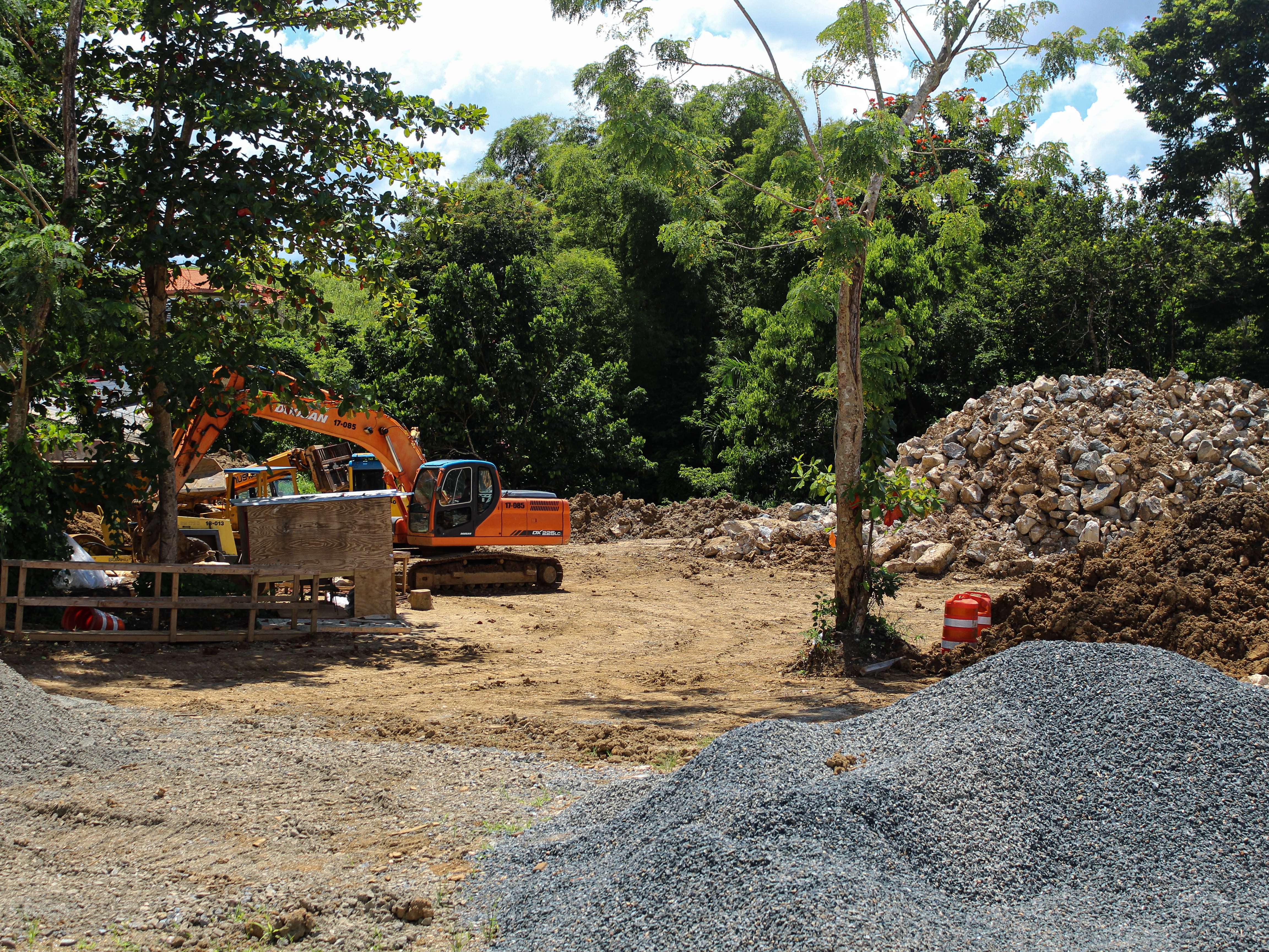 Arriba / Derecha: En la segunda imagen, los materiales a utilizar se pueden ver a simple vista en el área, así como los elementos que han retirado para permitir la construcción.