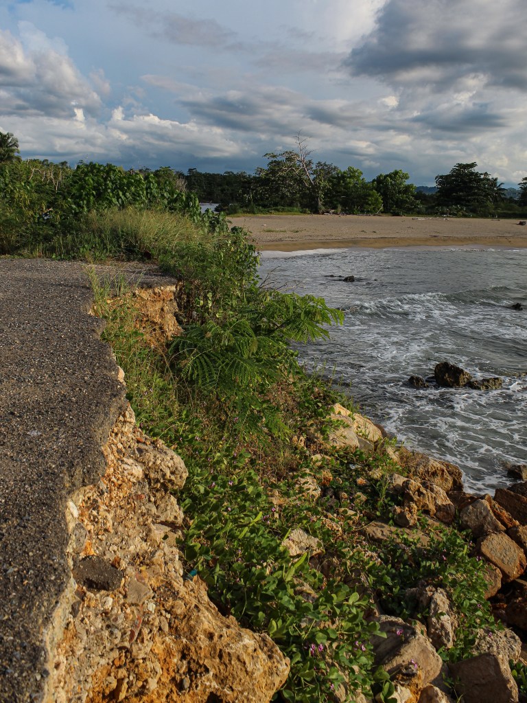 Arriba: El derrumbe de costas es otra preocupación del país que el Huracán María agravó. El Parque Colón en Aguadilla es uno de ellos y cada año es un poco más lo que se va al mar. Está situación también ocurre en distintos pueblos como por ejemplo: Isabela, Rincón, Arecibo, entre otros.
