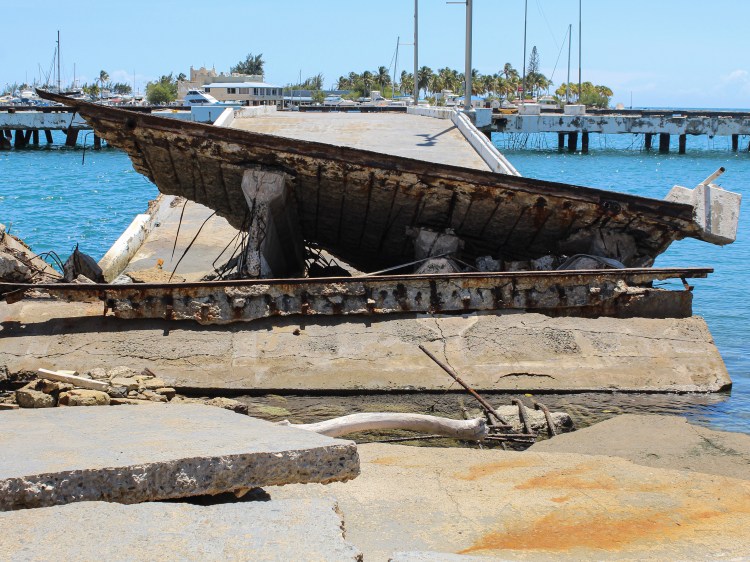 Arriba: Este puente forma parte de un muelle en Ponce que fue afectado por el Huracán María.