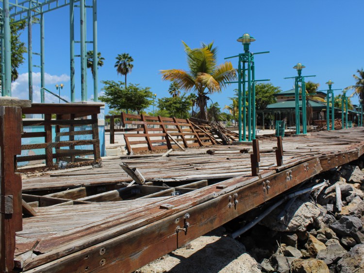 Arriba: La Guancha en Ponce fue uno de los lugares afectados por el Huracán María y los terremotos de enero de 2020. Luego de lo sucedido ha habido varios intentos de comenzar un proyecto de reparación. No obstante, las noticias más novedosas que circulan es el desarrollo de un diseño conceptual (Telemundo PR, 2020) y una designación de fondos por los daños que ocasionó el Huracán María (The Weekly Journal, 2021).