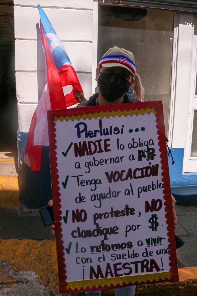 El miércoles, 9 de febrero de 2022, los trabajadores públicos del país retomaron las protestas reclamando, nuevamente, un salario digno. Entre los presentes se hallaba la maestra Michelle White Giraldes, de la escuela Superior Vocacional Salvador Fuentes Valentín en Aguadilla, quien ha ejercido en el magisterio por 22 años. Para Giraldes, esta era la primera vez que protestaba en la zona metropolitana, pero no era la primera vez que protestaba por la injusticia magisterial.