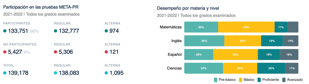 Según datos del Departamento de Educación de Puerto Rico (DE) la mayor parte del estudiantado obtuvo menos del 50% de “aprobación” en materias básicas. A pesar de que esto es un problema de años, hoy podemos decir que la situación se ha agravado de manera significativa. Esto, ya que estudiantes universitarios de nuevo ingreso presentan serias dificultades en problemas básicos de matemática e incluso en algo tan esencial como la lectura y escritura; destrezas que se supone que estudiantes de cuarto grado ya hayan desarrollado.