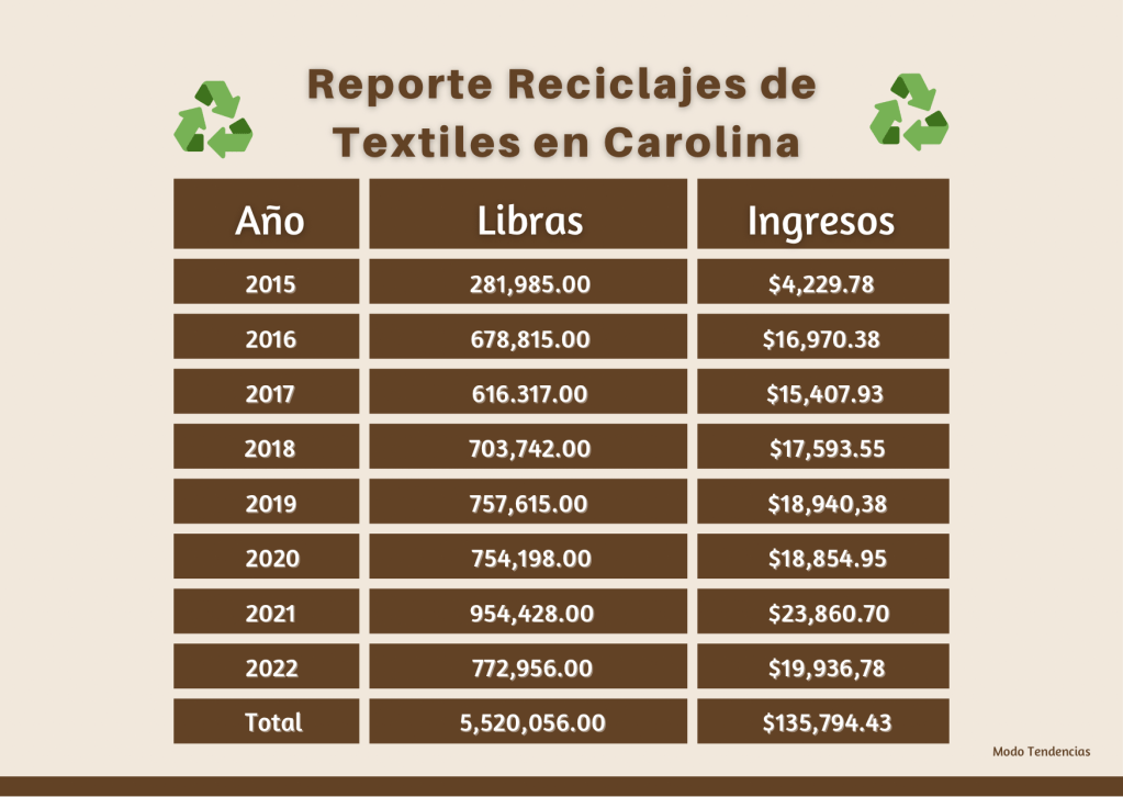 libras de textiles del 2015 al 2022. | Imagen por: Andrea L. Afanador Cuevas