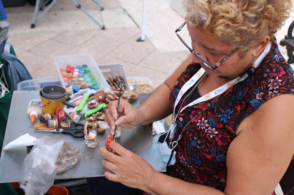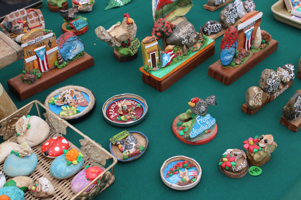 Para Evelyn Rivera esto ha sido su realidad por más de 35 años. Rivera o “Piedrita” como le llaman sus colegas artesanos, se ha dedicado por más de tres décadas únicamente a la artesanía. Es conocida, en su mayoría, por pintar estampas puertorriqueñas sobre pequeñas piedras. Aunque parte de sus piezas se componen de materiales que encuentra a su alrededor como semillas, desechos marinos y caracoles, ha experimentado el aumento de precios en las pinturas que utiliza en sus obras.
