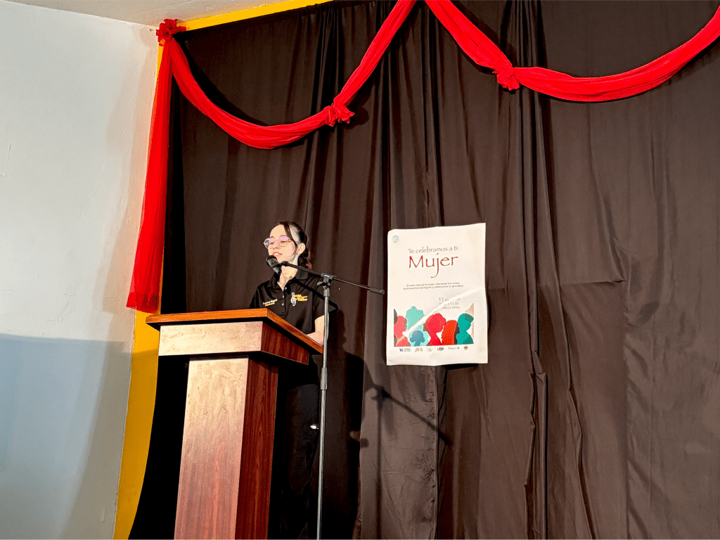 Posteriormente, la profesora Rebeca Franqui y estudiantes pertenecientes a uno de los cursos de español que ofrece, hicieron declamaciones de poemas alusivos a la mujer. La actividad finalizó con las estudiantes Eiline Ríos y Lorena Bagué, danzando y cantando respectivamente.