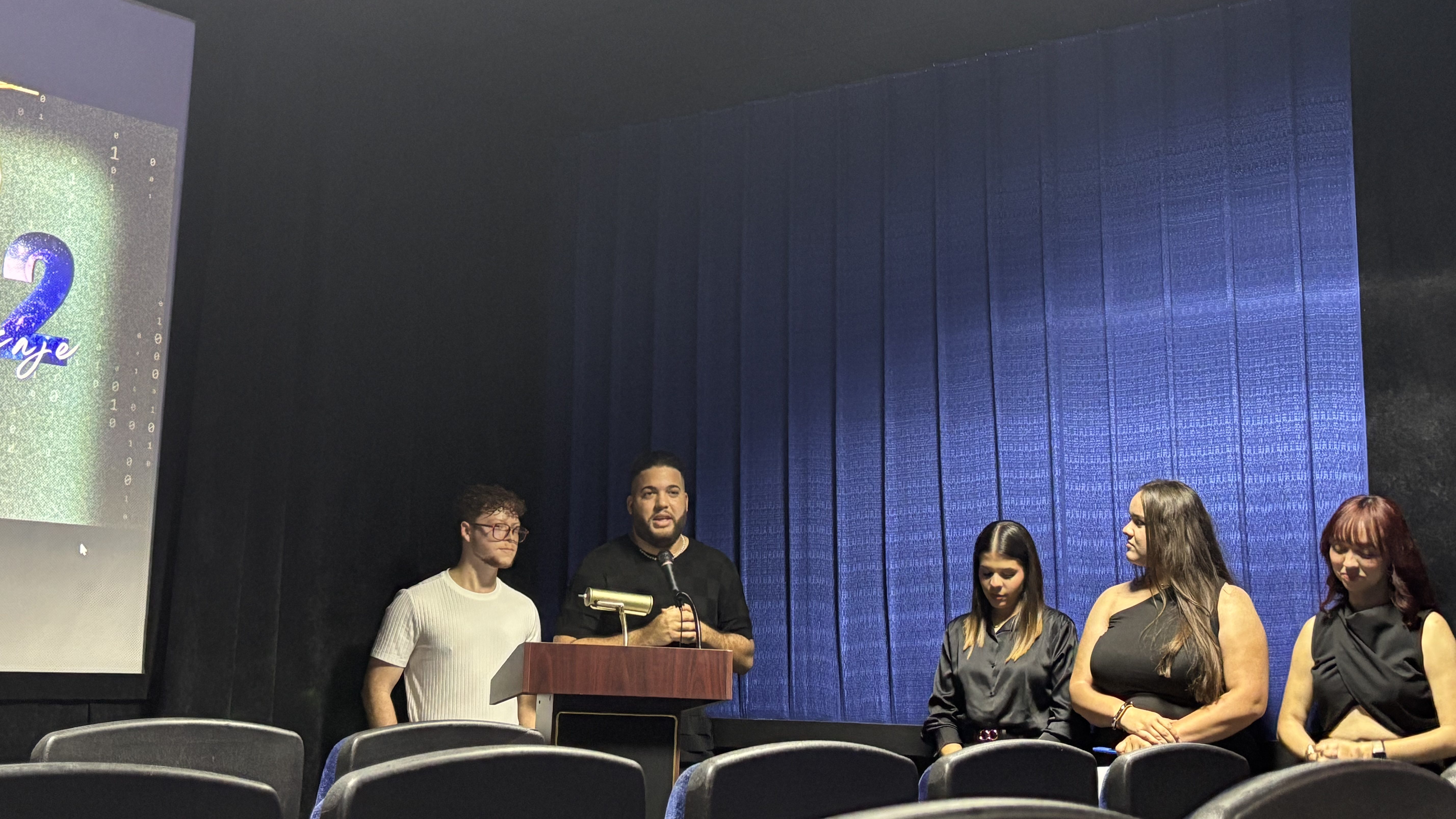 Grupo de estudiantes del curso COMU 4028 en la presentación del documental. Foto por: Raoul S. Luciano Maldonado