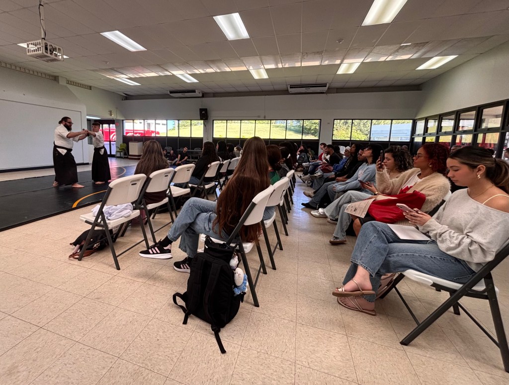 En el taller, los estudiantes del recinto tuvieron la oportunidad, no solo de aprender, sino participar y poner en práctica varios movimientos de defensa.