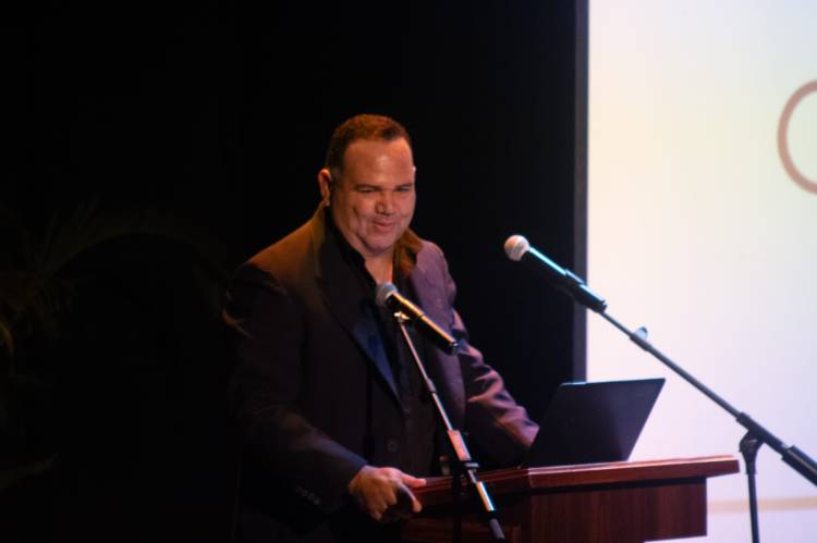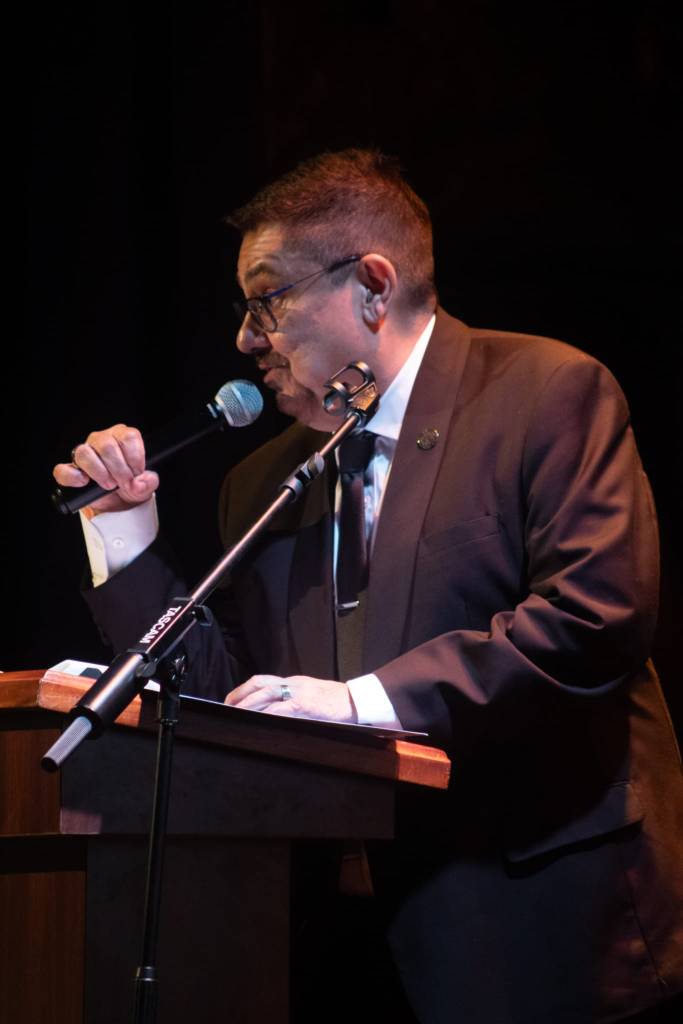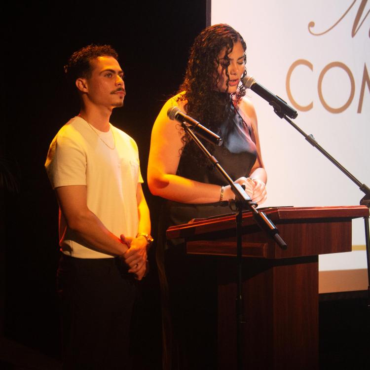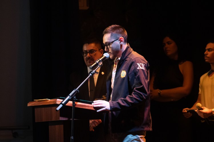 Jeremy Ortíz, egresado de UPRA y reportero en Telemundo, dio unas palabras en honor al Dr. Luciano. (Foto por: Migjoalis Montañez | @AFEV.UPRA)
