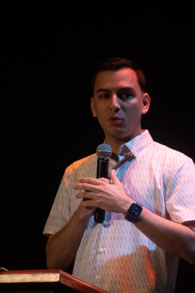 Jeremy Ortíz, hablando sobre su experiencia siendo estudiante del Dr. Juan Luciano. (Foto por: Jan Román Millán | @AFEV.UPRA)